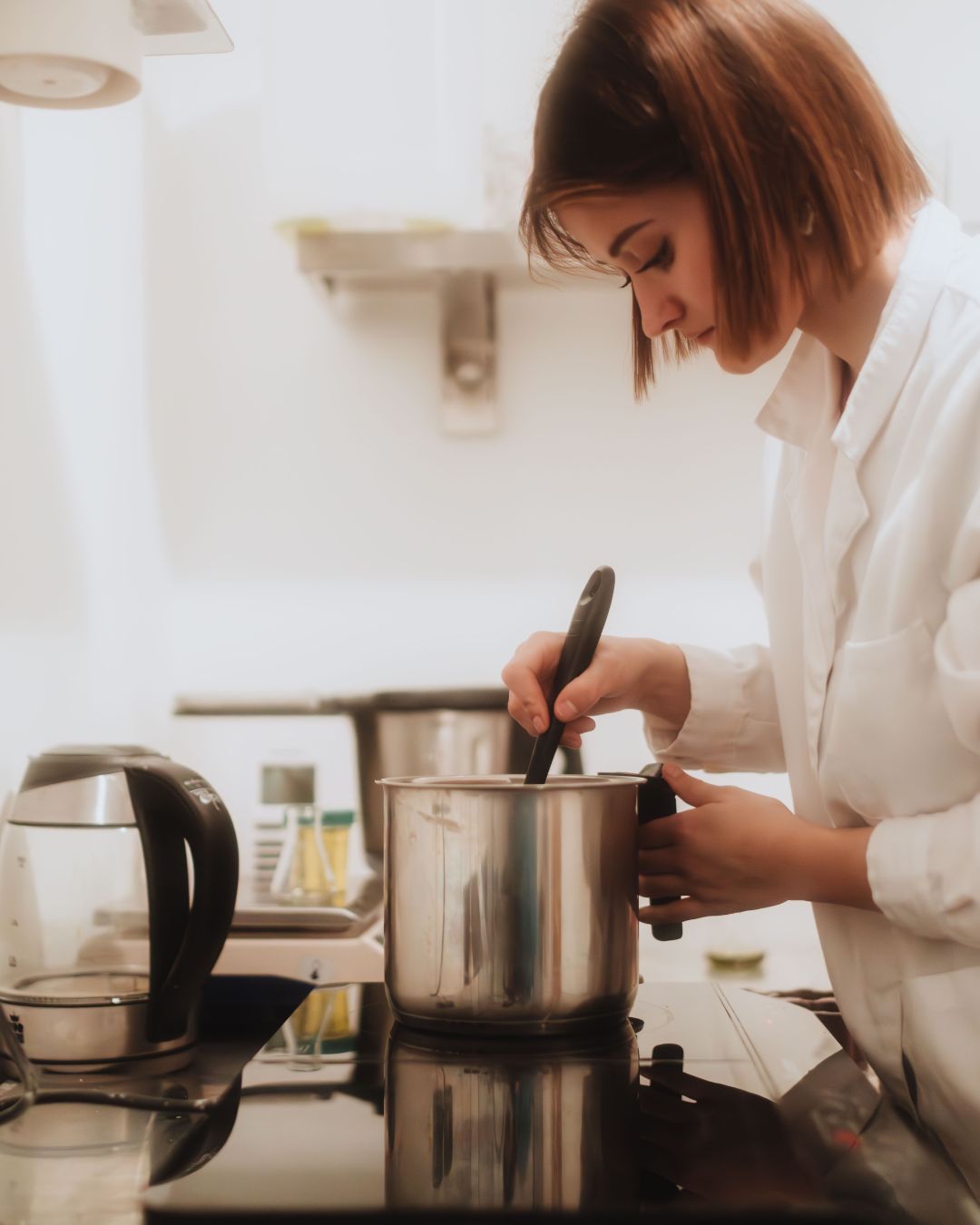 C’est dans mon propre laboratoire que j’ai commencé à formuler un shampoing, un masque, et bien d’autres produits. Chaque formule a été pensée avec soin, testée rigoureusement selon les normes obligatoires pour garantir efficacité et sécurité. Après des mois de travail passionné, ma marque a vu le jour en mars 2022, prête à offrir des soins authentiques et respectueux.